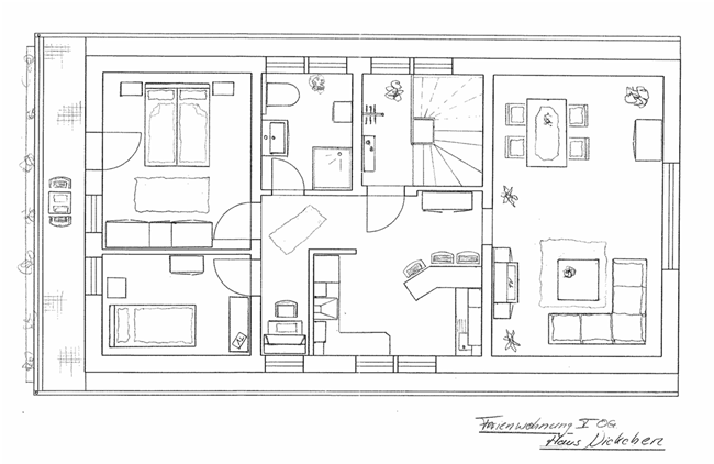 Grundriss der ca. 70 qm großen Ferienwohnung